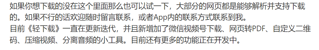 轻下载具体明确支持的网络平台有下面这些,如果你要下载的平台不在这个列表,作者提示说也可以放进来试试,大部分网页都是可以解析的。