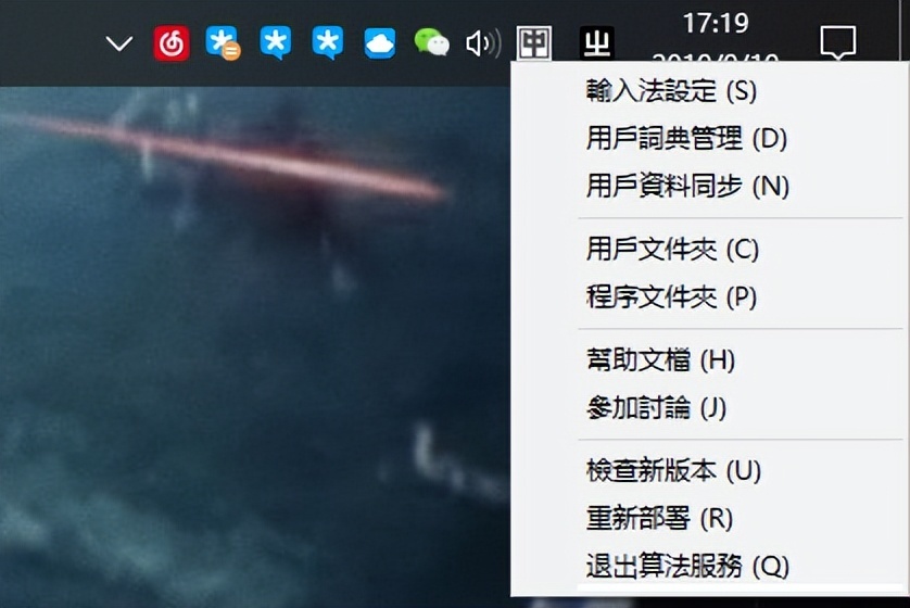 3.切换到「小狼毫输入法」在任务栏上的输入法图标,右键选择「用户词库管理」
