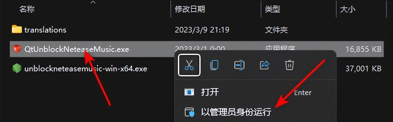 它的使用方法很简单:下载并解压给到大家的⌊QtUnblockNeteaseMusic⌉ 应用安装包,并右键⌊QtUnblockNeteaseMusic.exe⌉以管理员身份运行程序。就能看到如下界面: