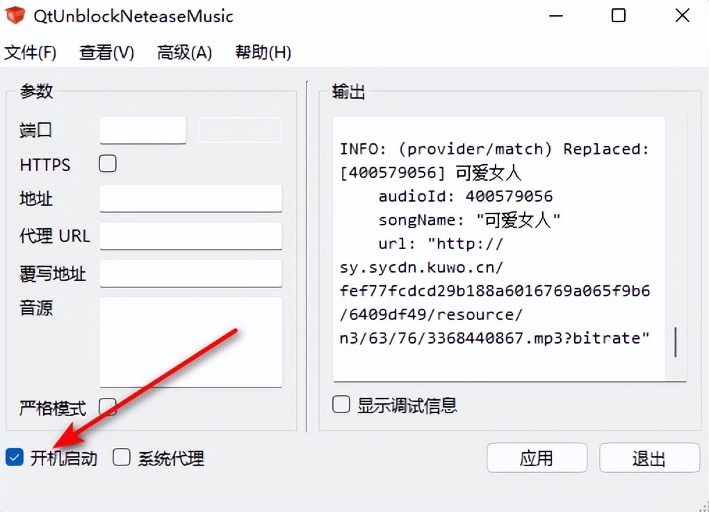 最后,如果你那方面的需求比较大的话,还可以将⌊QtUnblockNeteaseMusic⌉设置成开机自启: