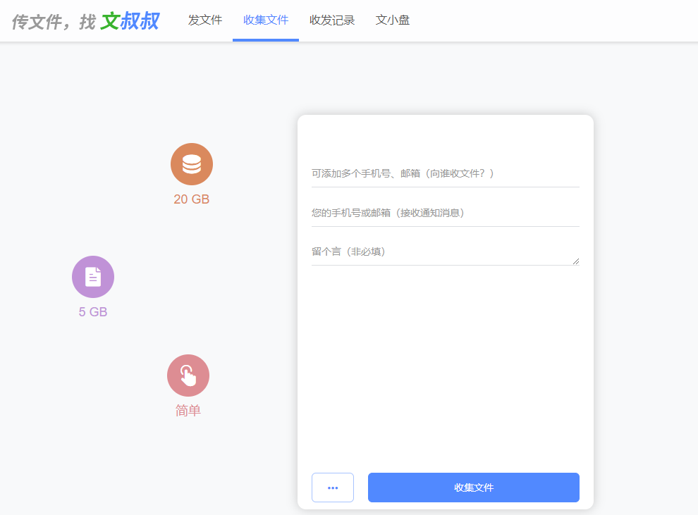 使用文叔叔,只需要对方的手机号或邮箱,就可以轻松将单个、多个文件传给对方。真香…