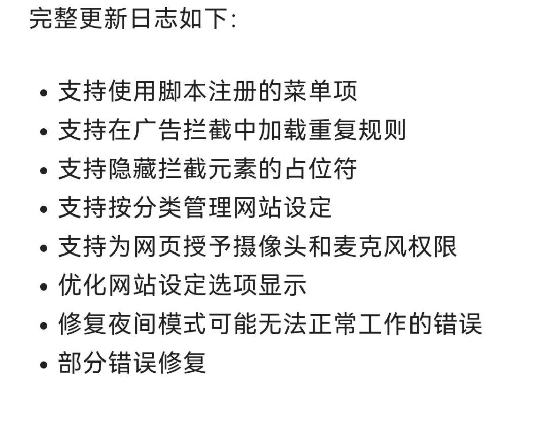 目前安卓最新版本是 v 4.5.1,v 4.5.1 版本在广告拦截和脚本上做了些改进,另外还对网站设定做了一些变更。