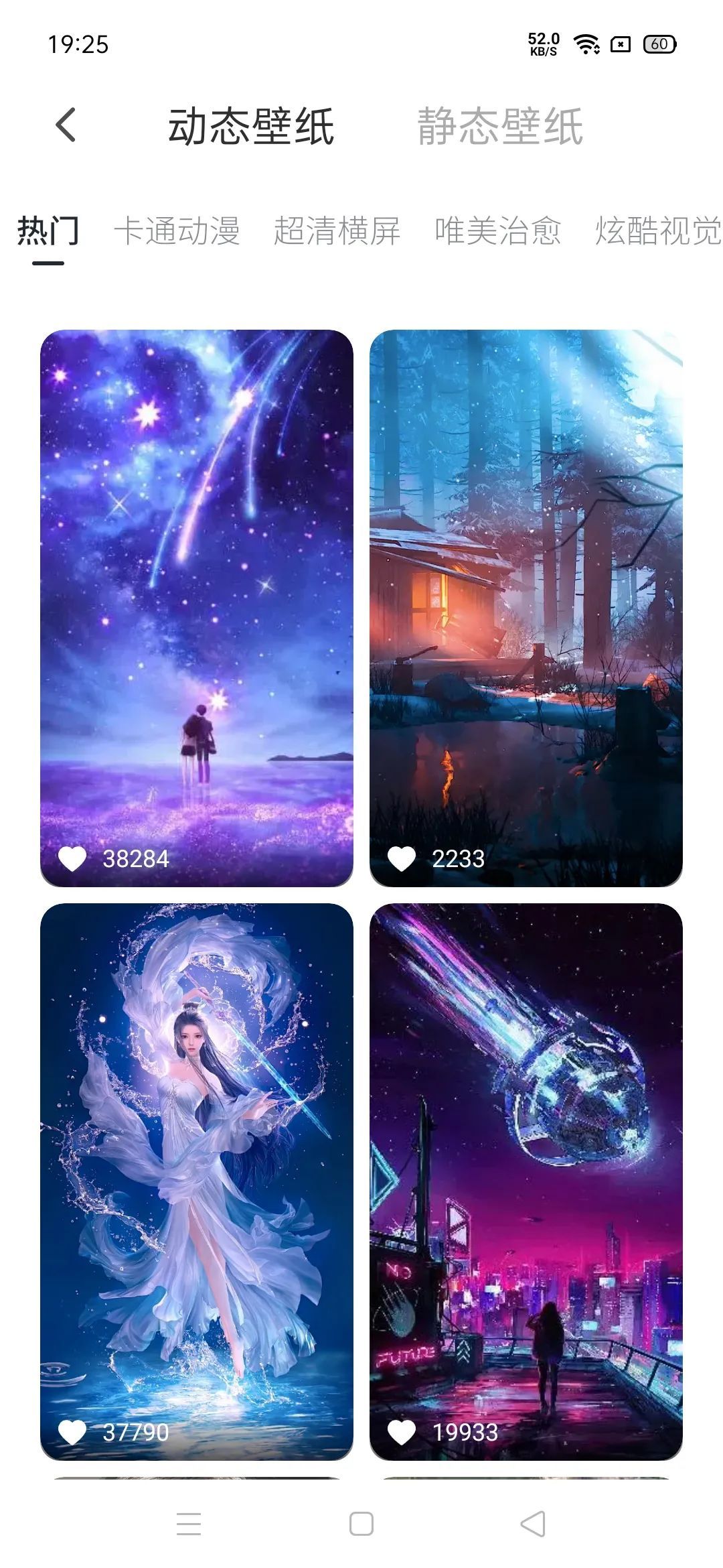 在这里除了有一些主题组件之外还有壁纸可以选择,动态壁纸 静态壁纸等等统统可以下载~