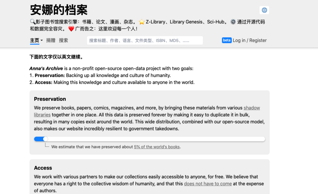 这是一个影子图书馆搜索引擎,结合了 Z-Library、Library Genesis 两个电子书网站的资源,它可以搜索任意的书籍、论文、漫画、杂志和其他文件。简而言之,白嫖电子书。