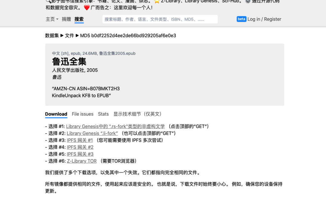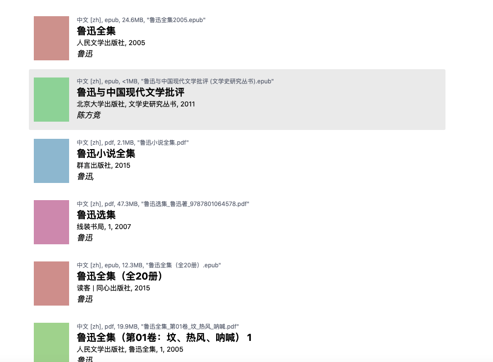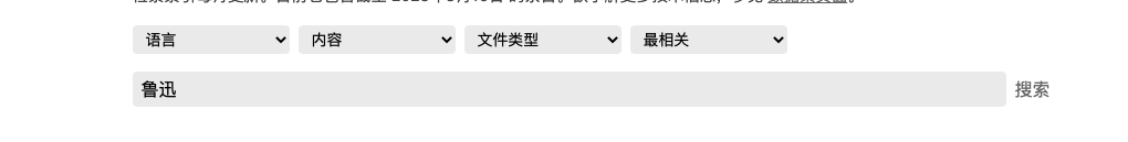 比如我搜索「鲁迅」就有非常多的电子书资源,还可以按语言、内容、文件类型进行筛选。