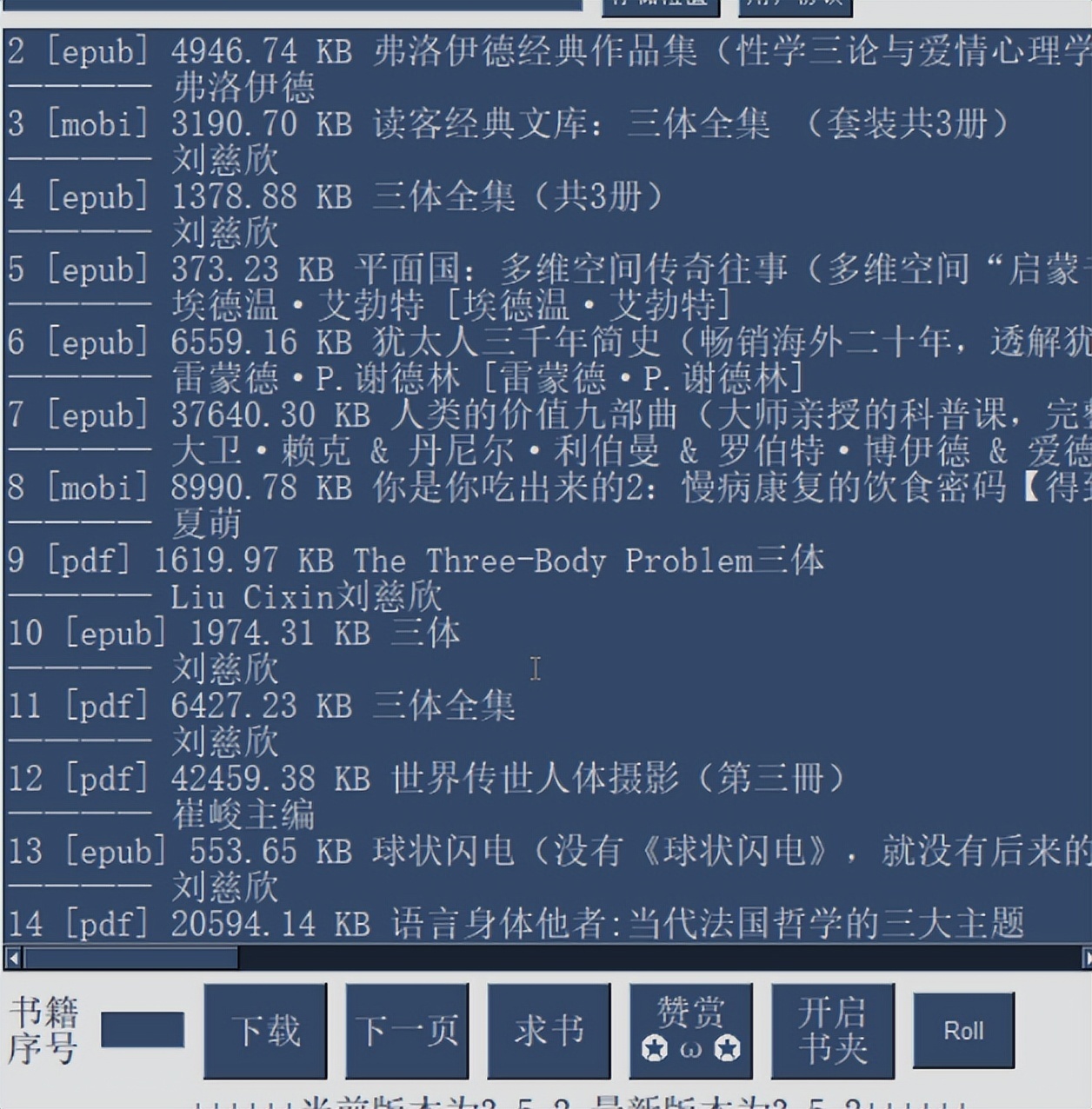 如果觉得搜索结果不满意,你还可以在上面切换“搜索线路”,找到你想要的书籍。接着看好书籍前面的“序号”,最后在下方的“书籍序号”输入序号,点击“下载”即可(记得设置“存储位置”)。