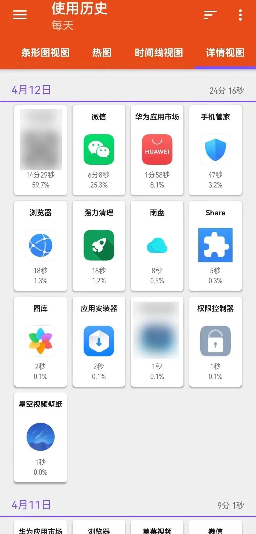 软件以时间线视图的方式,可以查看手机在什么时间打开了什么应用,并且使用了多久,还可以查看历史记录。