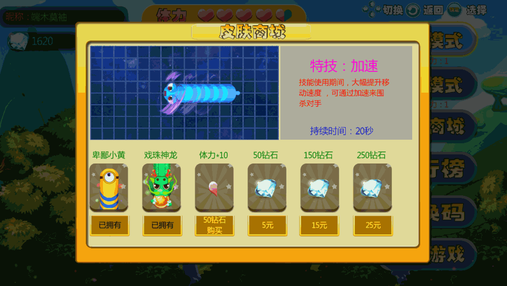 游戏购买皮肤和复活都需要金币,而内购版可以无限制购买金币,真的很爽!!