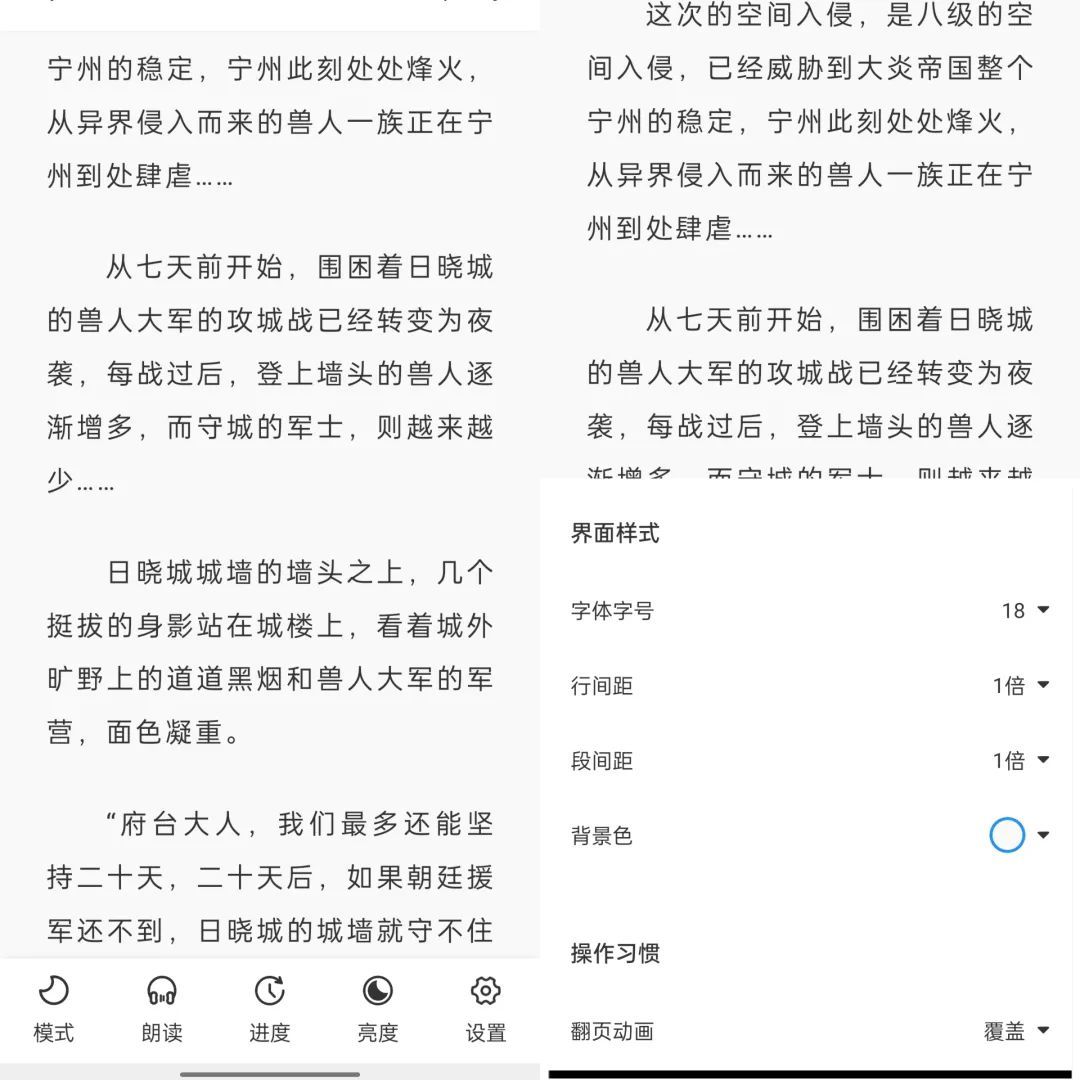 点进去阅读该有的功能也全都有,可以根据自己的阅读习惯设置字体、背景色、翻页动画等。