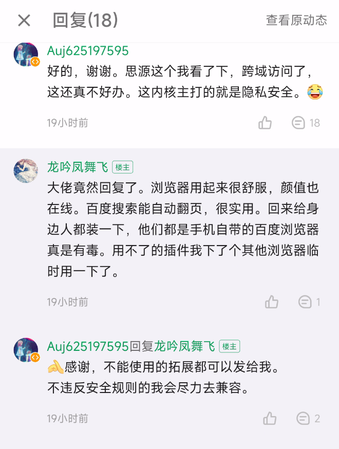 安卓系统出来这么多年,现在新出的安卓手机浏览器,如果只有基本的浏览功能,已经很难引起大家的注意,新出的浏览器除了要小巧好用之外,支持各种扩展也是一大亮点,上一年给大家介绍过雨见浏览器的这篇文章:开发者默默无闻做了6年的浏览器,让我来帮他宣传下吧。