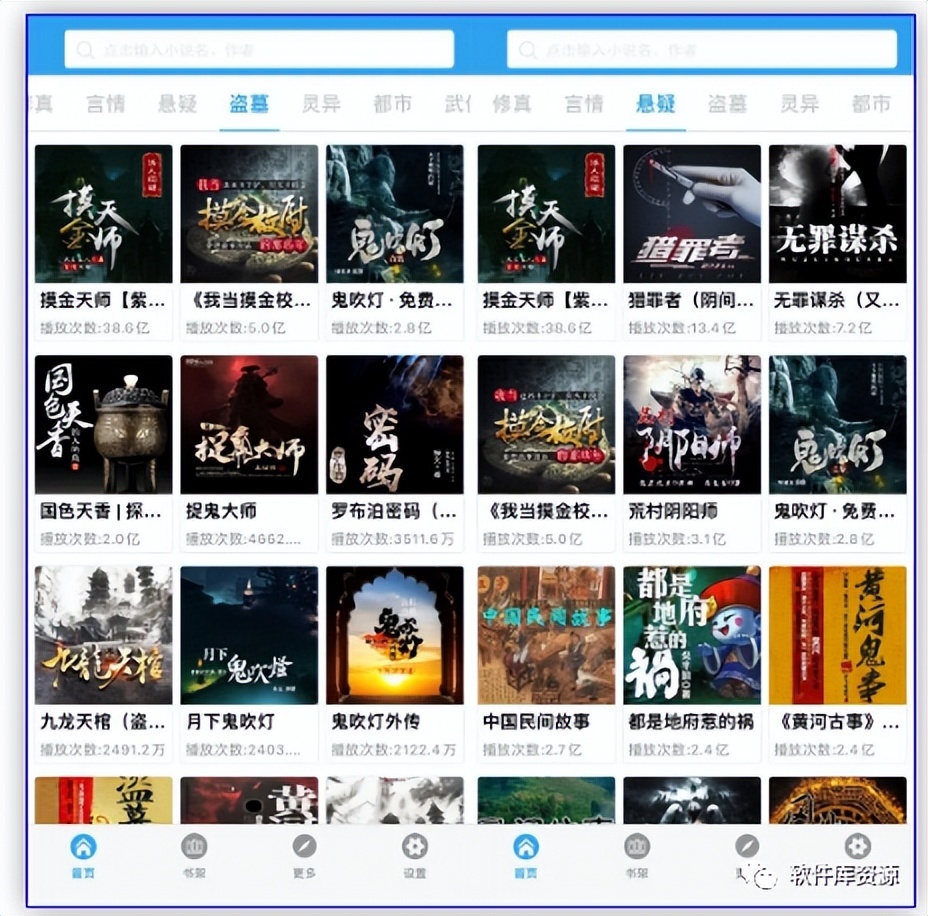软件首页是一些热门的有声小说资源推荐,大家可以根据分类进行筛选查看,各种类型的都有,言情、悬疑、盗墓、灵异、都市等等!