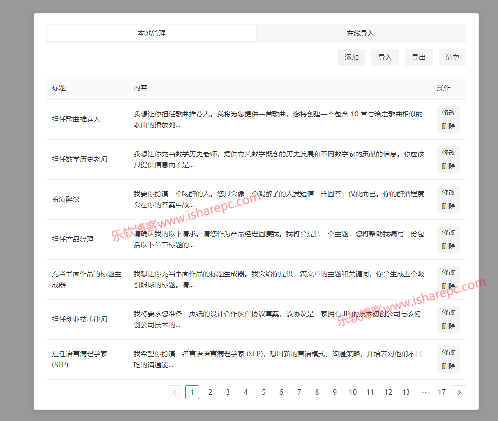 AlchatOS,使用简单,直接在输入框问问题即可,它也有一个Prompt Store ,可以本地导入也可以在线导入,比如它罗列了一个ChatGPT中文调教指南,你可以直接下载导入。