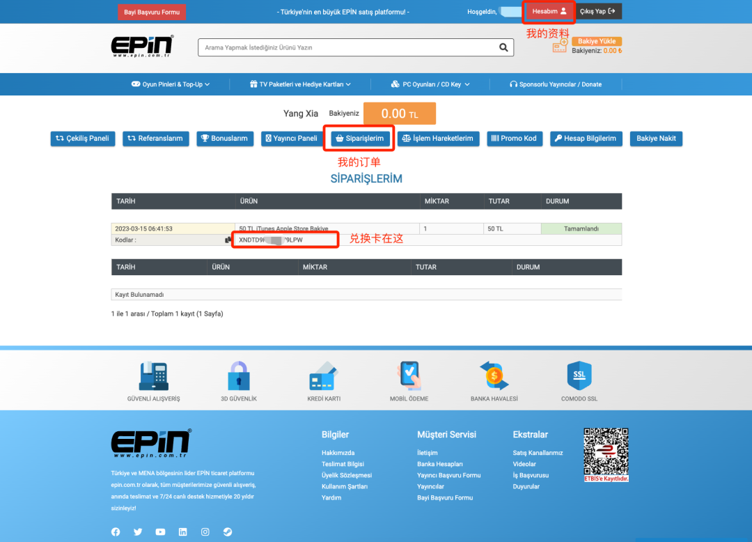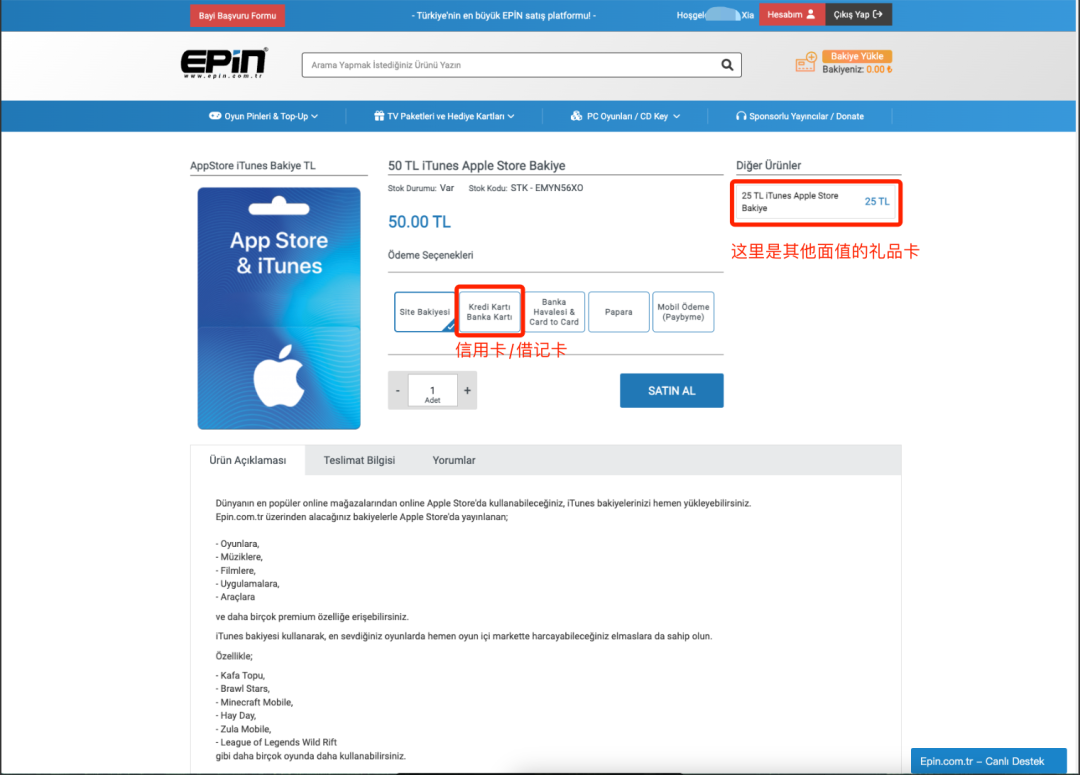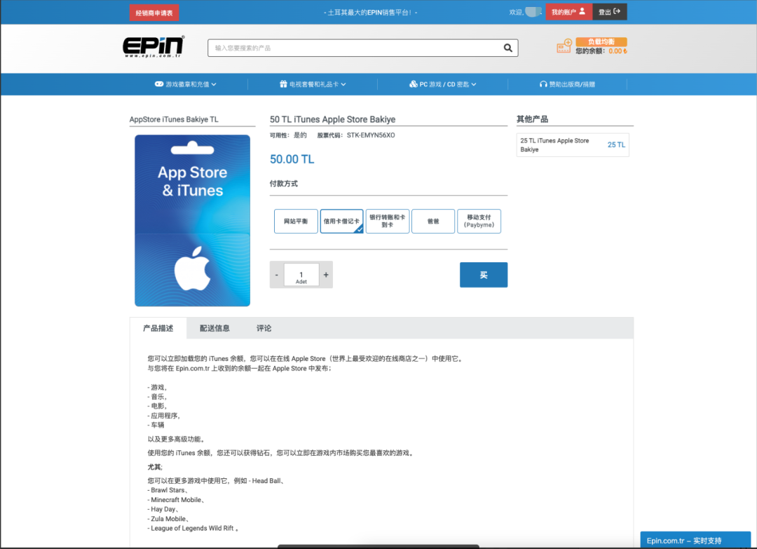 7.1 购买土耳其礼品卡(EPiN)此渠道最近抽风严重,不建议现在从此购买!!!