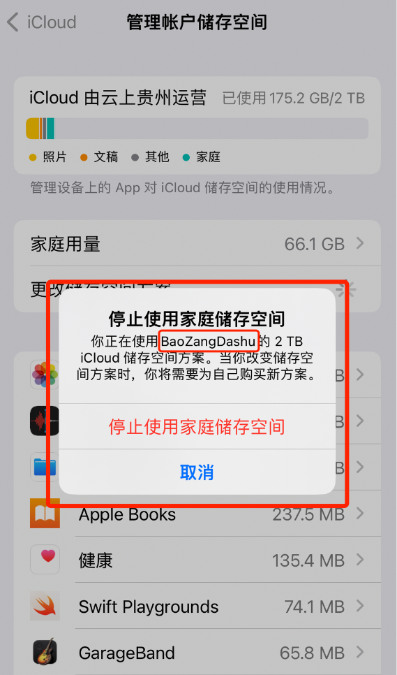 使用家庭中【非土区账号苹果设备】,可以查看当前使用的iCloud空间是不是由土耳其账号所分享的空间,如果是