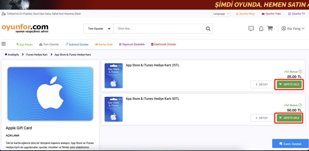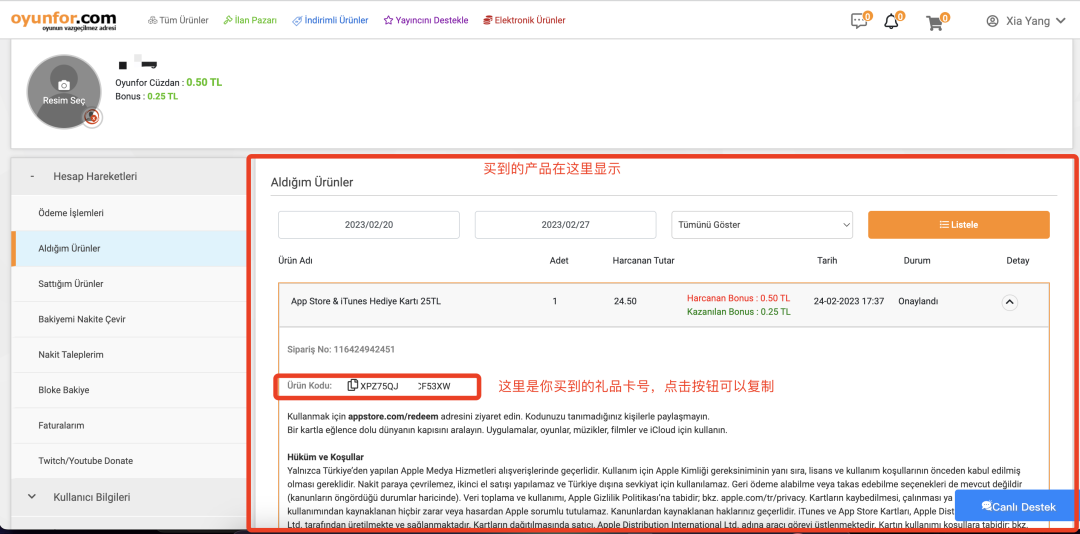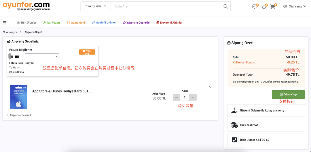 7.2 购买土耳其礼品卡(oyunfor)偶尔抽风,可以购买