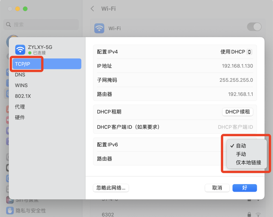 Mac:在【系统设置】-【网络】-【详细信息】-【TCP/IP】-【配置IPv6】,将选项设置成【仅本地连接】即可解决,购买完成后再改成【自动】即可。