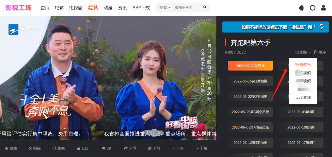 可以看到拥有多个资源站点,随便点开一个基本都是可以直接播放的,若遇到不能播放或者加载慢卡顿的问题,直接换一个站点即可!