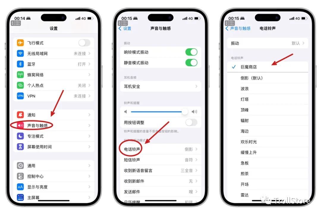 打开手机设置 → 声音与触感 → 电话铃声,看可以看到导入的铃声了,点击即可选择使用。