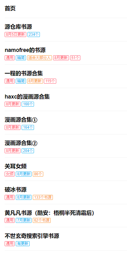 其中全量书源已经多达 5000 多条,还有非常多的合集书源、精品书源等,主题有微信阅读日间和夜间、厚墨日间,阅读排版有番茄小说等,建议使用手机浏览器打开可以一键导入。