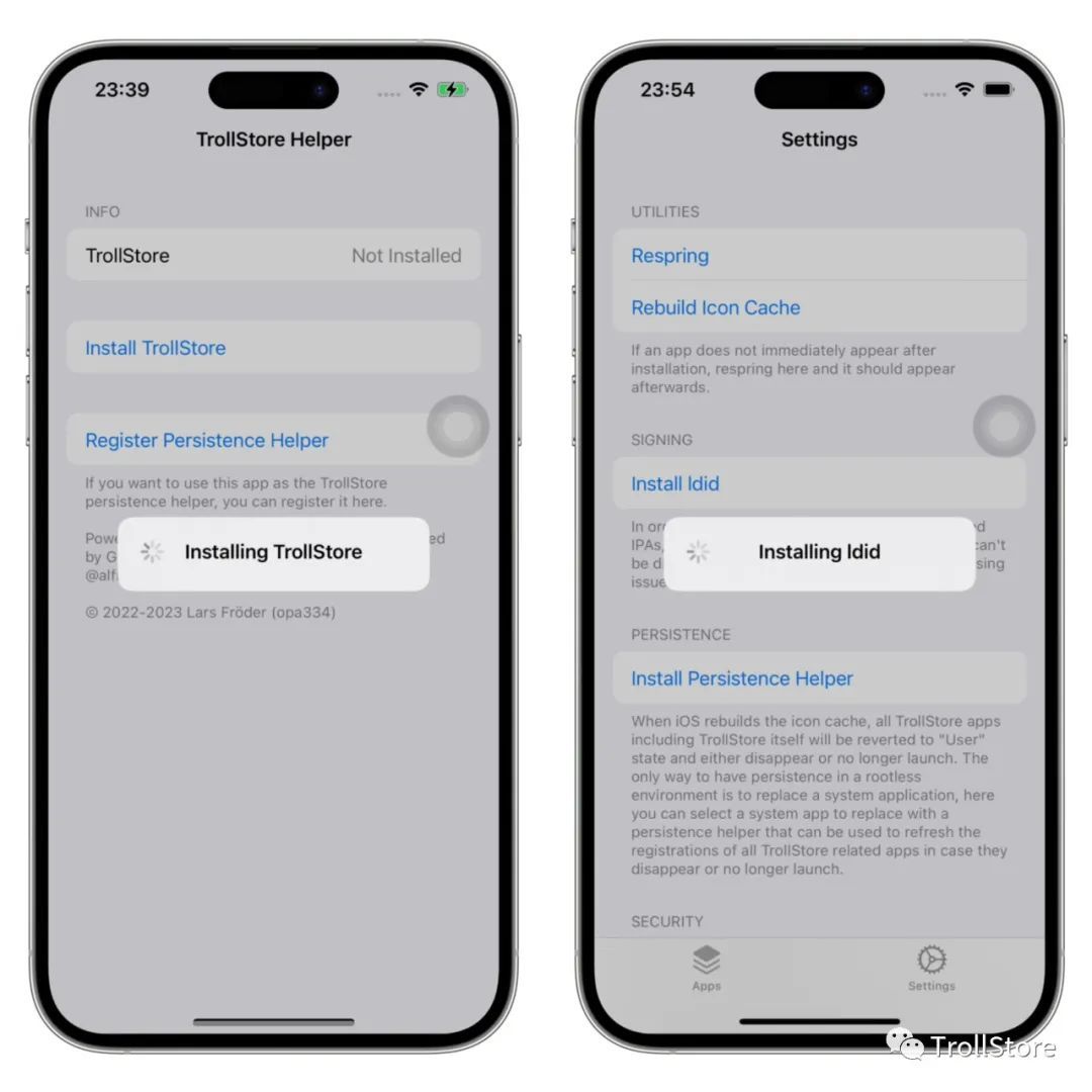 重启以后点击手机的 提示app 这个时候手机的提示app已经被替换成了,TrollStore2 的安装器,我们点击Install TrollStore安装,安装好了再点击Install Idid就大功告成了!这里需要注意的是,如果一直失败或者Install Idid点不动,就需要挂科技哈。下面看看视频教程