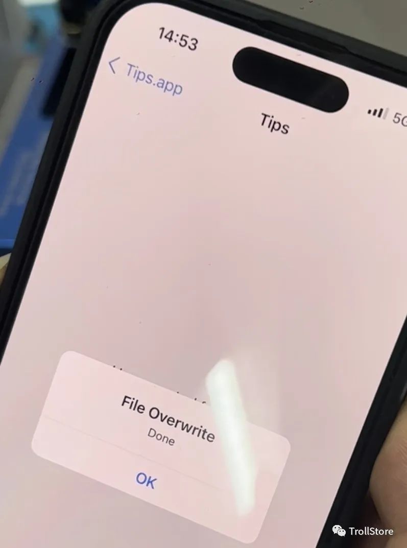 9,然后开机,打开 Tips提示 应用程序并安装TrollStore就可以了。