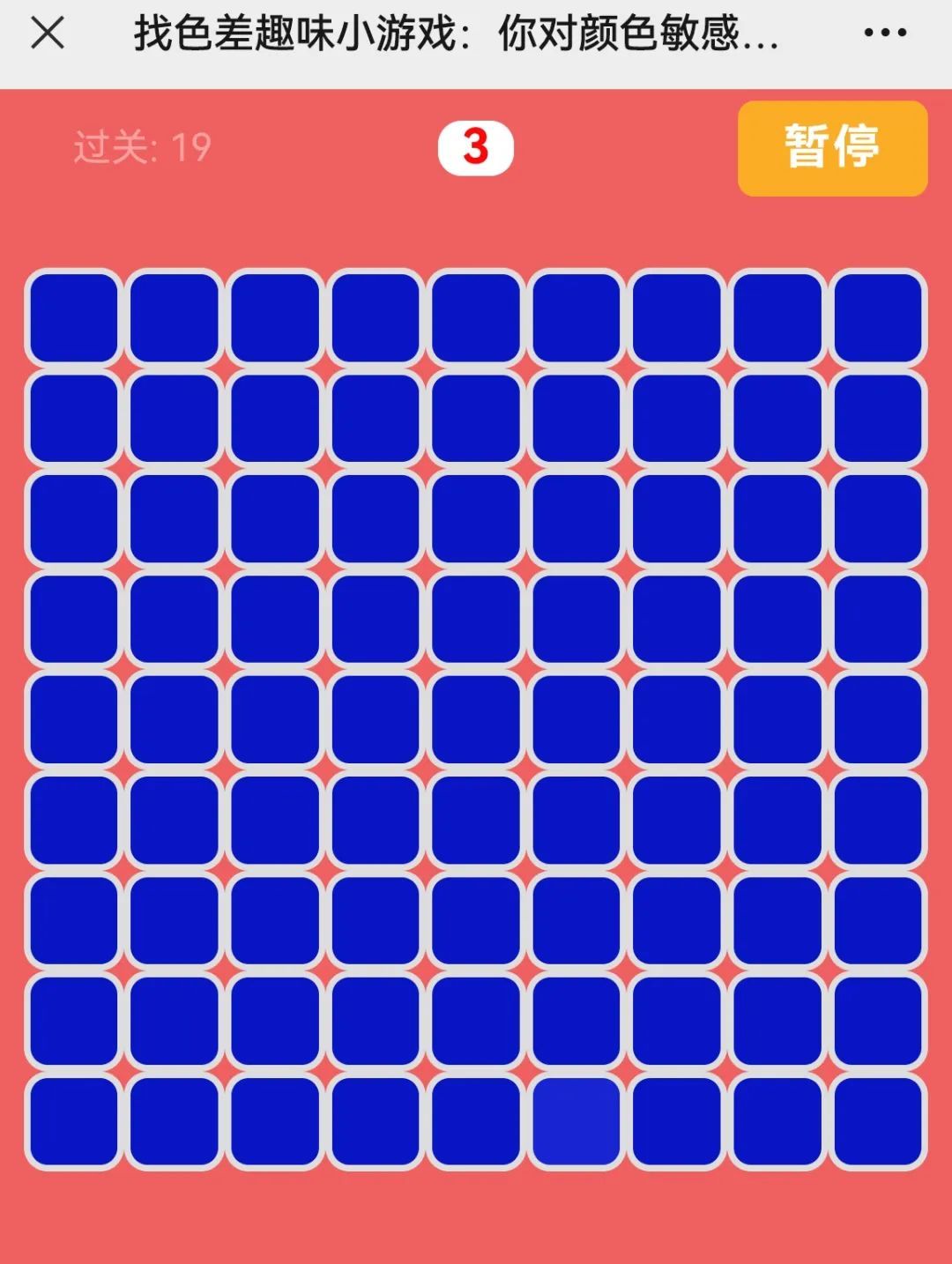 一个测试眼睛对色彩敏感程度的小游戏,一分钟之内你你能识别出多少个色块。