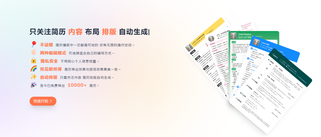 免费的简历制作神器,以最简单的方式来写好简历,无需制作烦琐的 Excel 表格,专注内容本身而无需关注排版。