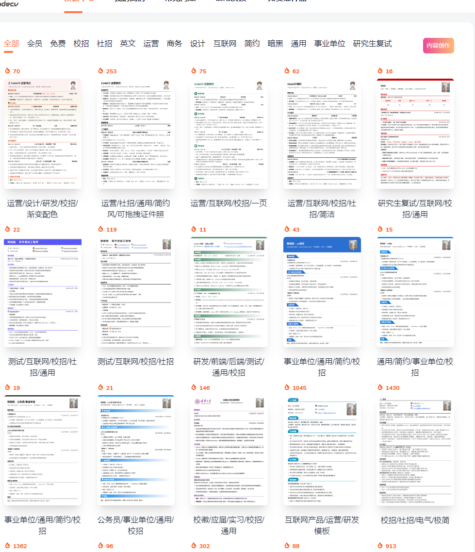 CodeCV 支持使用 Markdown 语法来编写简历,可扩展性极高。且支持双编辑模式,Markdown 模式以及内容模式无缝切换,多种模板适配,编写一套简历内容可适配多个简历模板。