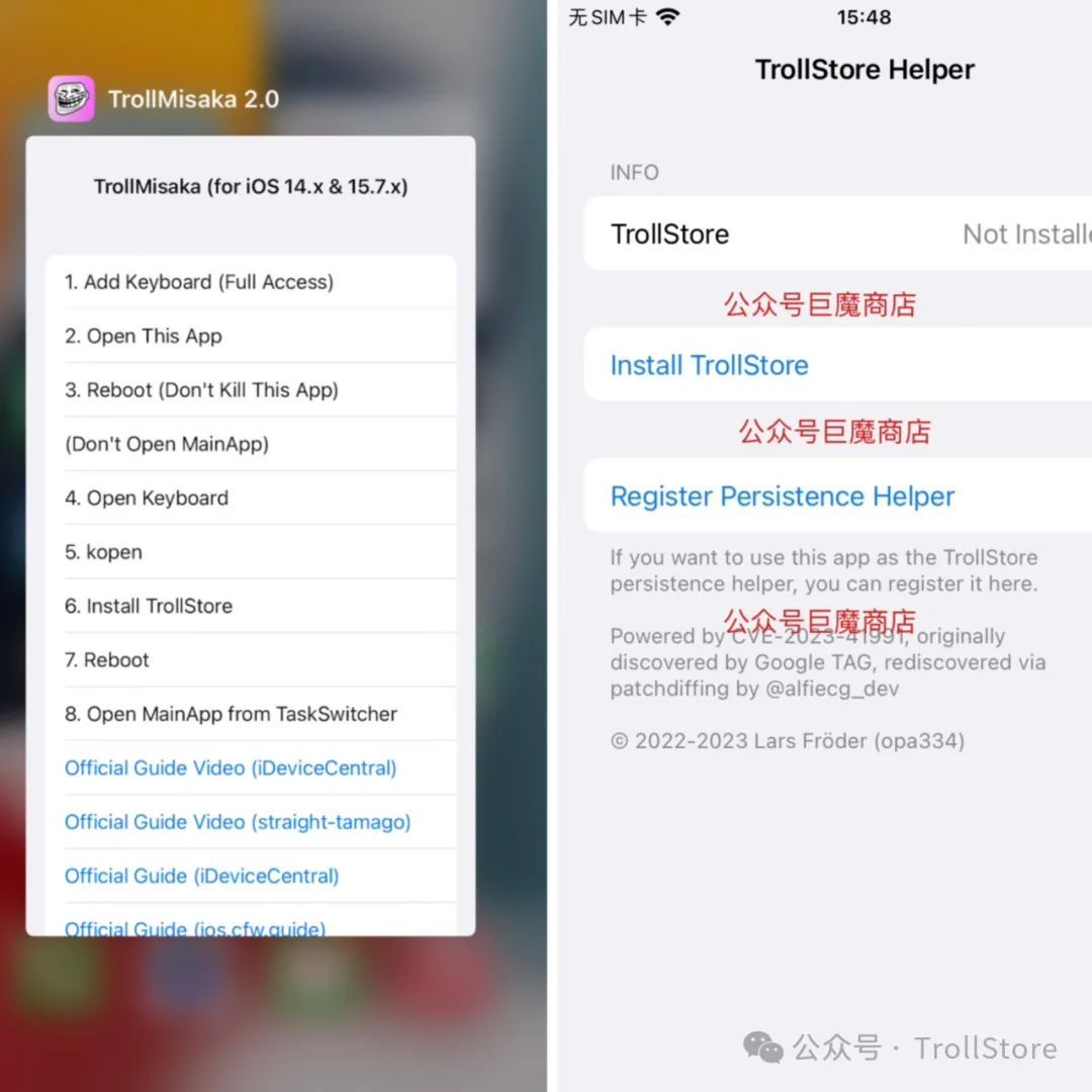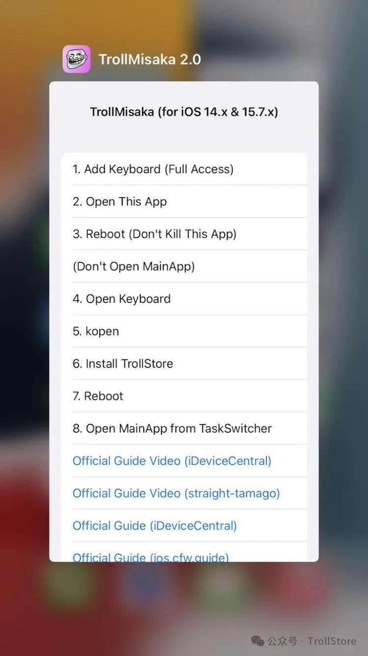 TrollMisaka巨魔商店安装器2.0已经发布。现已支持 iOS 14 – 15.8.1 系统。目前支持设备没有标注但是我使用iPhone 7系统15.7.8测试是可以成功的。下面我们来详细说一说安装教程和使用方法。