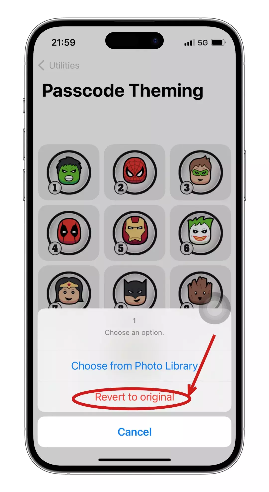 任意点击你设置的主题,它会弹出选择和删除界面,看到底部红色Revert to original 点击它删除即可!也是需要一个一个的删除!