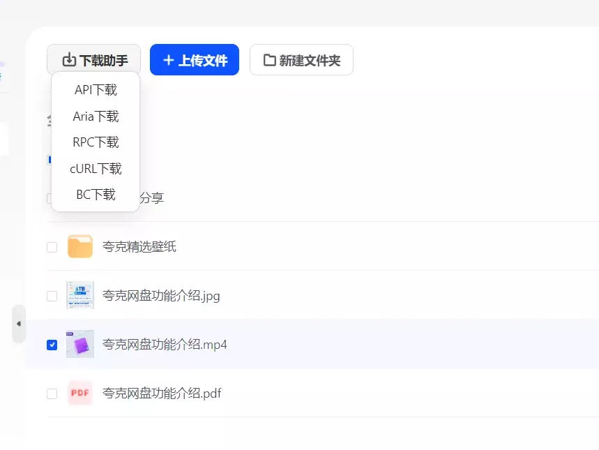 选择我们要下载的文件,在菜单栏位置有一个下载助手按钮,你能看到多种下载链接,根据你所使用下载器的不同,选择对应的下载链接,IDM、NDM 或者浏览器自带的下载器,请选择 API 下载,比特彗星就使用 BC 下载。