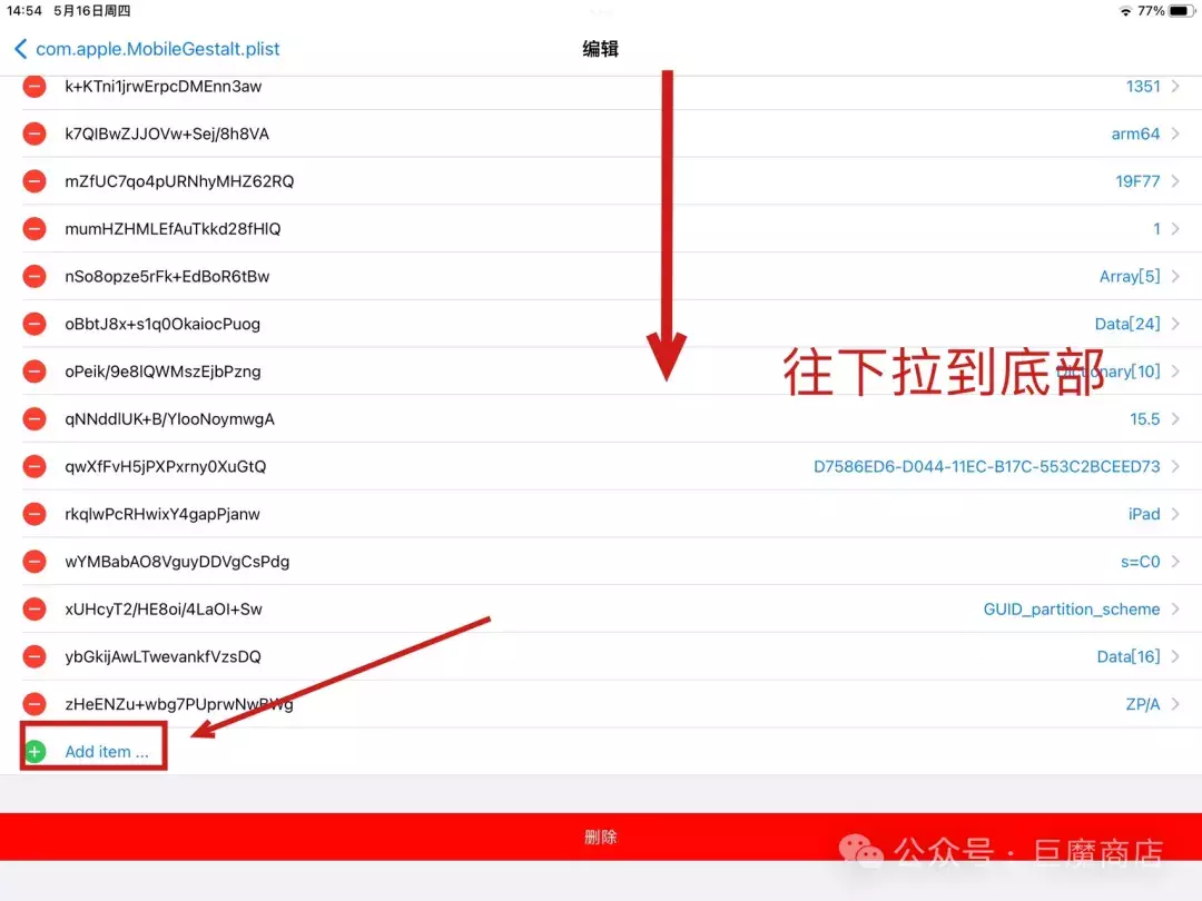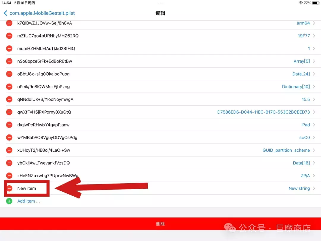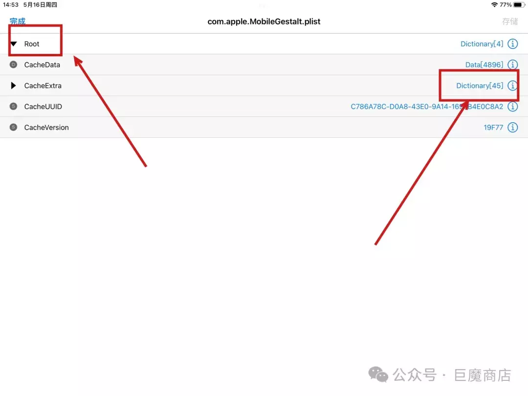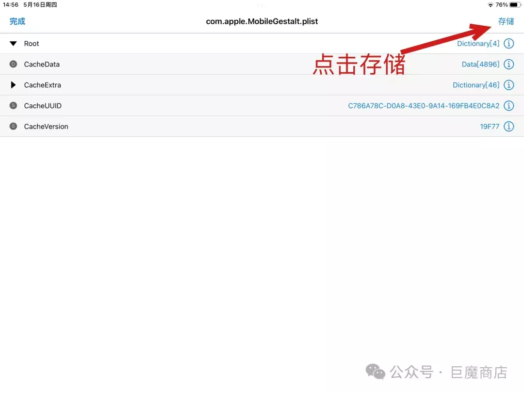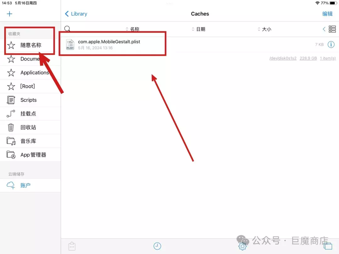 接着找到刚才设置的文件名称,点击它,再点击上图 com.apple.MobileGestalt.plist