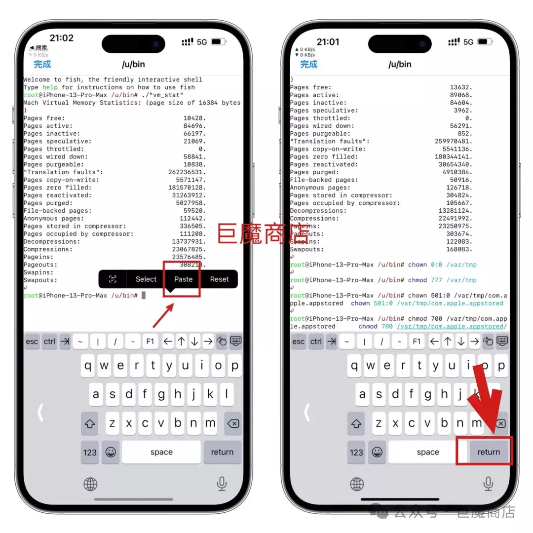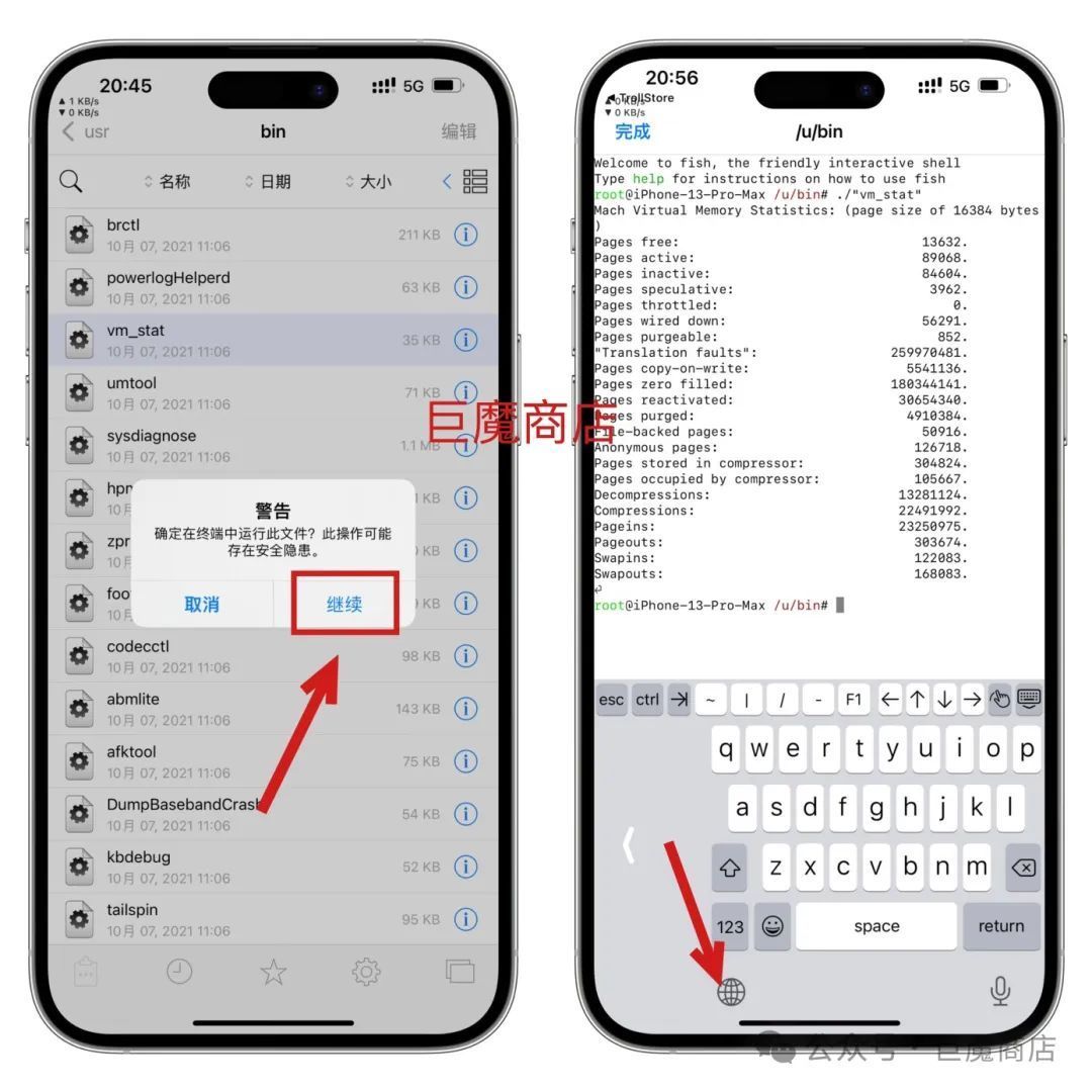 安装好了打开Filza,点击左上角,回到文件管理器首页,按上图找到这个路径: /usr/bin/vm_stat