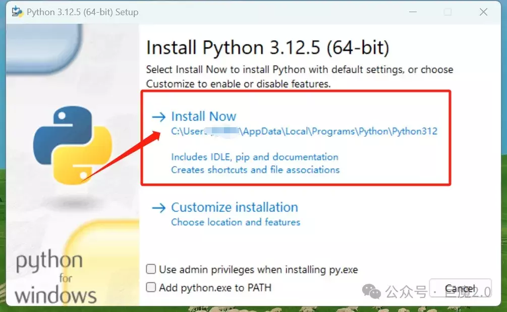 下载好 python-3.12.5 打开它,点击 Install Now 安装
