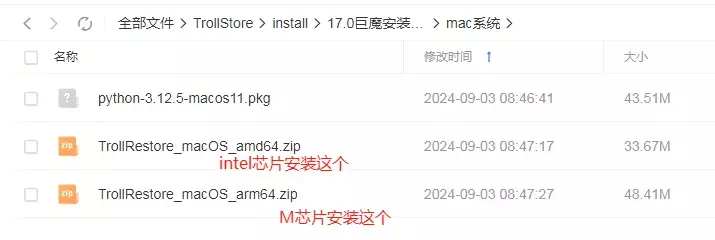- Inter芯片下载 TrollRestore_macOS_amd64.zip