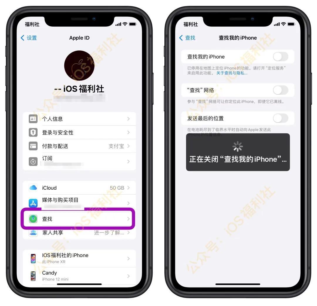 1. 手机必须要关闭查找我的iPhone,如下图。