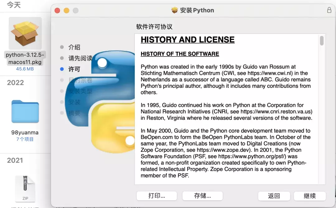 1. 先配置Py环境,也就是下载 Python 3.12.5的PKG文件,双击安装即可,一直点继续(同意),安装后不用动。