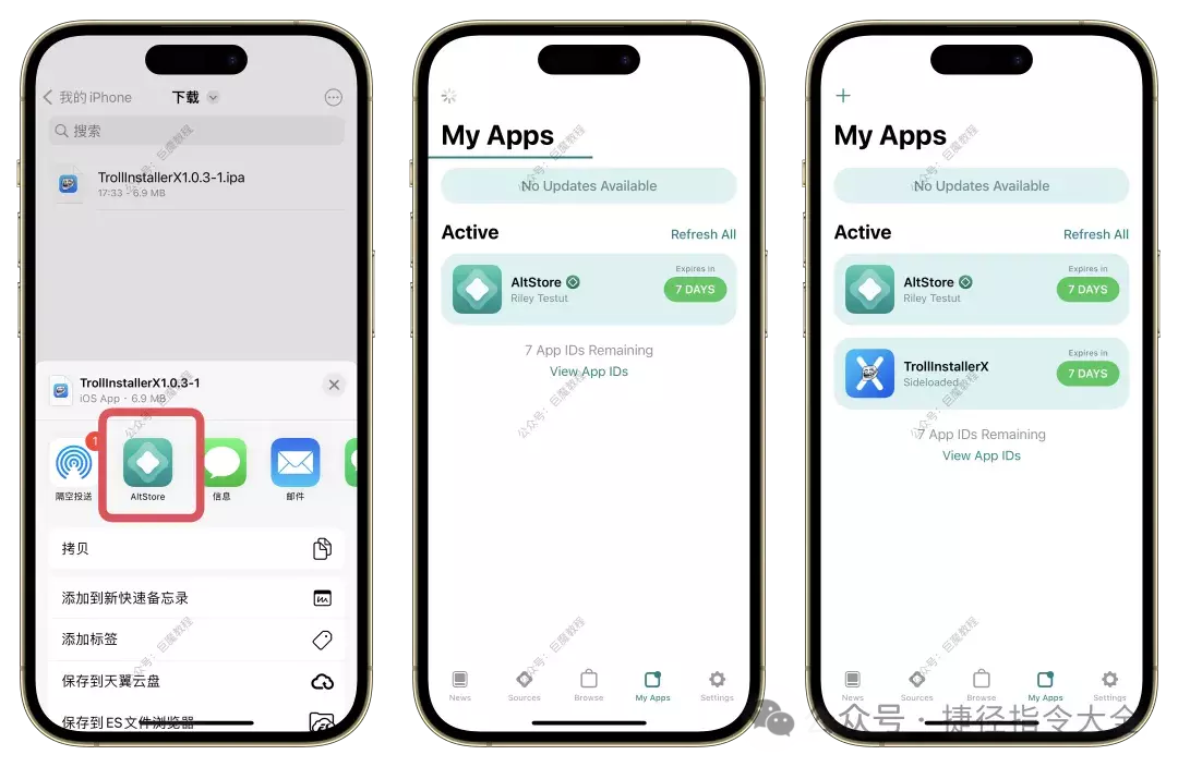 以上三个工具都是不错的自签/续签工具,让你在未越狱的设备上任意安装ipa,缺点就是签名的ipa数量有限制,而且需要7天一续签不能像个人签或者TrollStore一样无限制安装,但是前面我也讲了,电脑签名ipa只是备用.