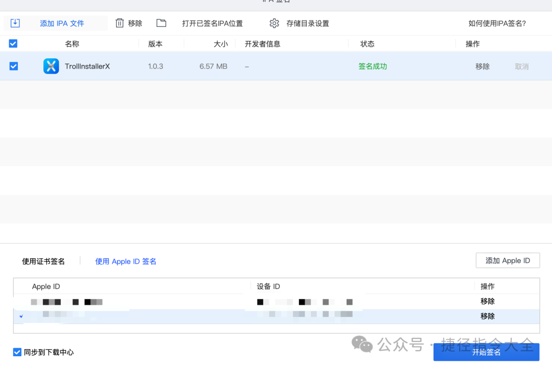 签名失败的话我建议换ID重新尝试!!!我也是换了两个ID才成功安装.