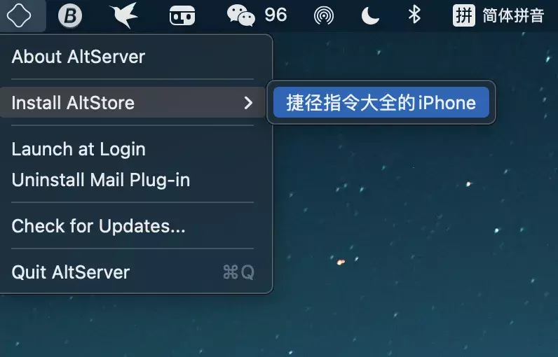 下载完成之后安装,顶部栏图标为棱形的为Altserver签名工具.
