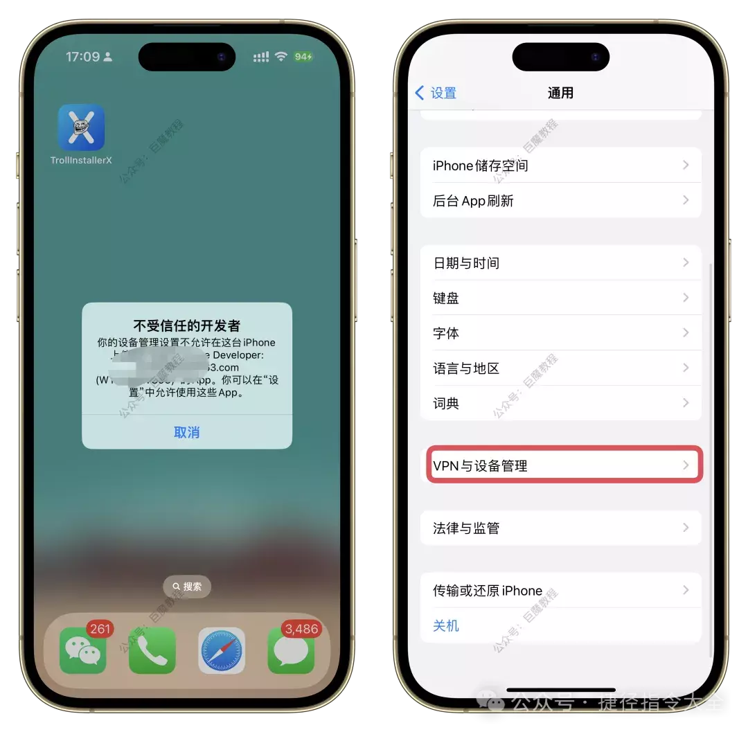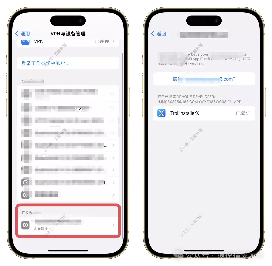 用爱思助手安装到手机,然后,可以在 设置–通用–描述文件与设备管理里,找到刚刚用于签名的ID点击刚刚安装好的软件软件对他点击信任,此时表示已经全部完成。
