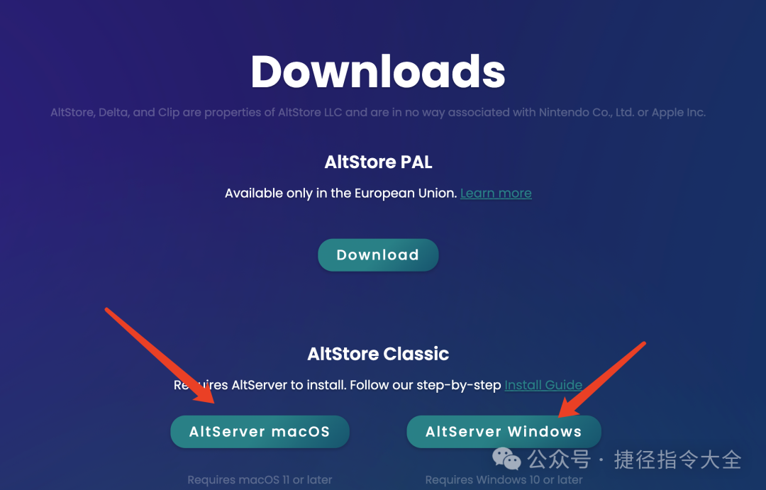 打开官网,点击对应的操作系开始下载 AltStore 的安装包.
