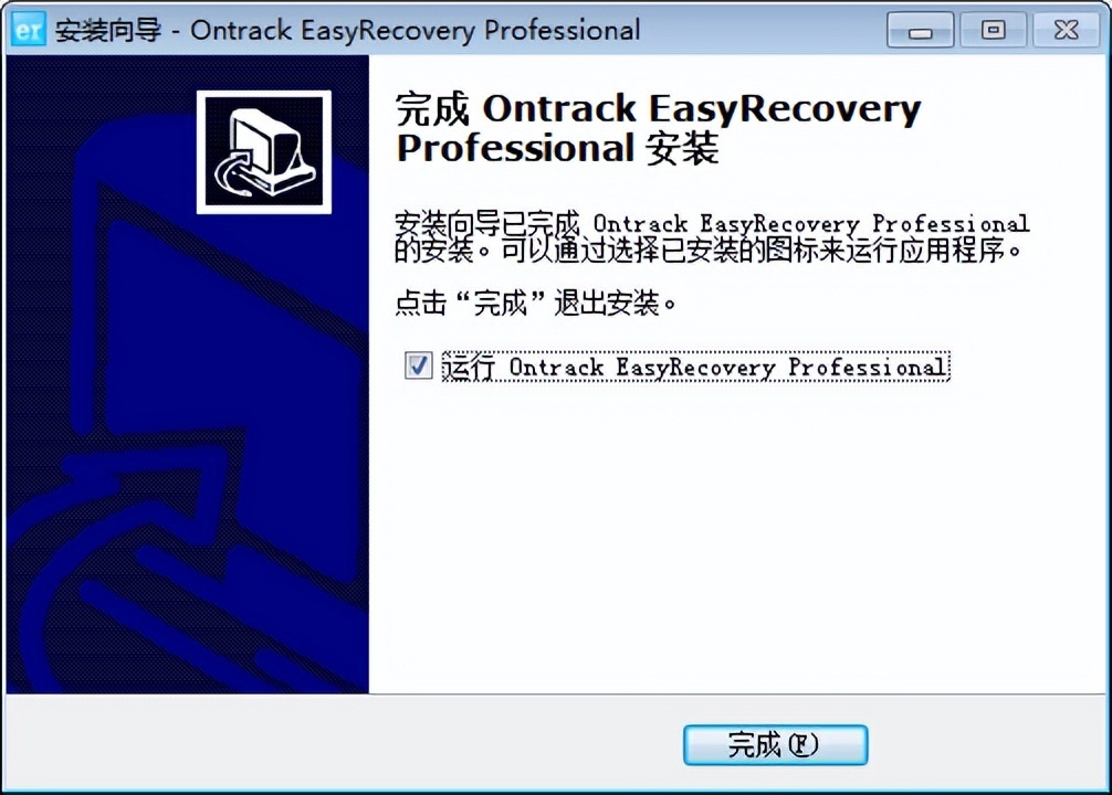 7.等待安装完成,如要完成安装后运行EasyRecovery,可勾选“运行Ontrack EasyRecovery Professional”,点击“完成”退出安装。