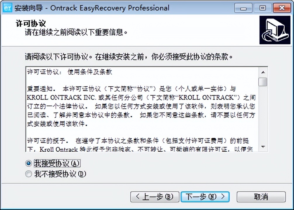1.双击EasyRecovery安装包,启动安装向导开始安装,单击“下一步”继续。