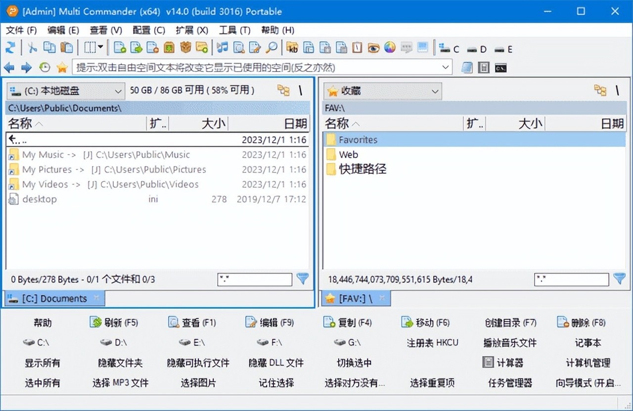 1. 双面板文件管理器:支持多标签、文件夹同步、多窗口拖放等功能;