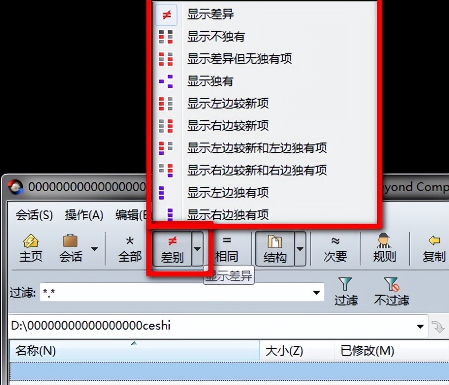 (4).在文件夹对比时可以使用不同的扩展来添加选项使文件名对齐
