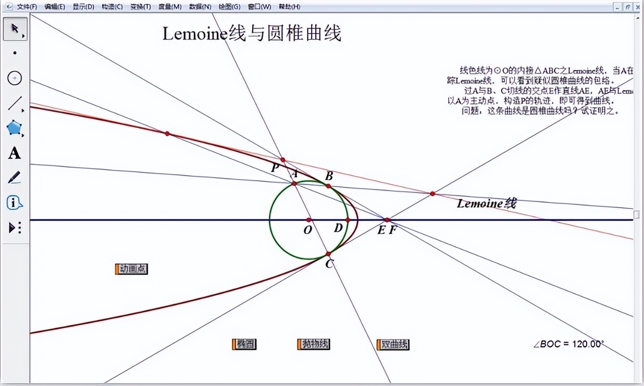 可以用鼠标拖动图形上任一元素(点、线、圆),而事先给定的所有几何关系(即图形的基本性质)都保持不变,这样更有利于在图形的变化中把握不变,突破了传统教学的难点。