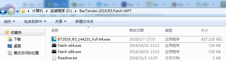 1、首先先下载并解压软件压缩包,之后得到32位和64位的BarTender.2019中文原程序,包括了bartender2019破解补丁