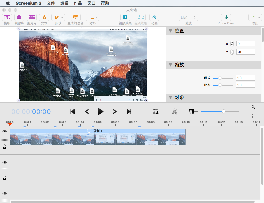 Screenium 舒适而强大的视频编辑器为您提供了需要剪切连续镜头、嵌入文本或添加特效、切换效果或动画的所有工具。突出鼠标点按动作,添加几何形状或隐藏屏幕上含有个人信息的部分。当然您也可以编辑音轨和对其添加过滤器。使用文本合成,您甚至可以添加多语言音频注释或自动生成嗓音音轨。