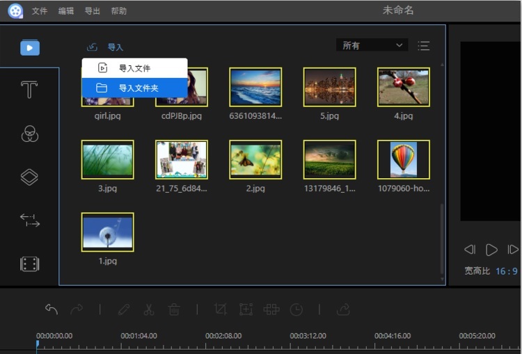 视频编辑王不仅可以让您拖拽单个文件导入,您还可以直接拖拽整个文件夹快速导入,大大提高的剪辑视频的效率。